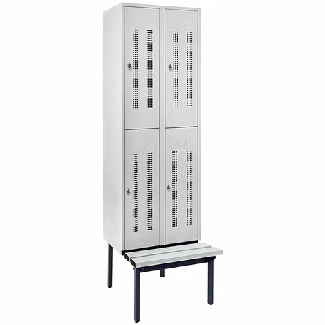 Abteilbreite: 300 mm, Anzahl Abteile: 4, Breite: 600 mm, Höhe: 2135 mm, Schrankhöhe: 1750 mm, Schranktiefe: 500 mm, Sitzhöhe: 400 mm, Sitztiefe: 300 mm, Sockelhöhe: 50 mm, Staffelpreisvorteil ab: 1 Stück, Tastaturplatte: 0, Tiefe: 800 mm, Ausführung Spindgestell: mit Füßen, Innenausstattung: 1 Kleiderstange, 3 verschiebbare Haken, Korpusfarbe: Lichtblau Ral 5012, Material: Stahlblech, punktgeschweißt, Preiseinheit: Stück, Türart: Vollwand-Türen, Türfarbe: lichtblau RAL 5012, Verschlussart: Doppelbartschloss mit 2 Schlüsseln