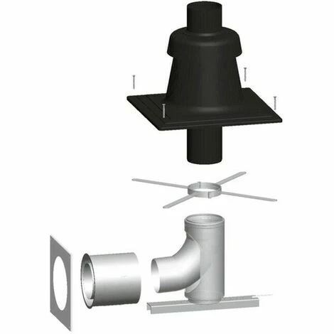 für Gasbrennwertthermen und Gasbrennwertzentralen, für COB-29, 2er Kaskade, raumluftabhängig, bestehend aus: Schachtabdeckung DN 110 (Polypropylen) mit Mündungsrohr (Polypropylen, schwarz), 6x Abstandshalter DN 110 (Polypropylen), Stützbogen 87° DN 110 (Polypropylen) mit Abstützung, Wandfutter DN 110/160 (Edelstahl), Mauerblende DN 160 (Edelstahl), Gleitmittel-Tube 50 ml
