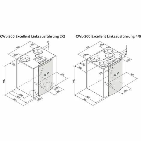 - Erhältlich auch als CWL-180 Excellent mit 180m³/h und CWL-400 Excellent mit 400m³/h Luftleistung.