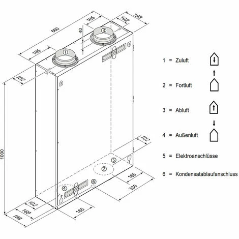 - Abmessungen (H x B x T): 1000 x 660 x 198 mm