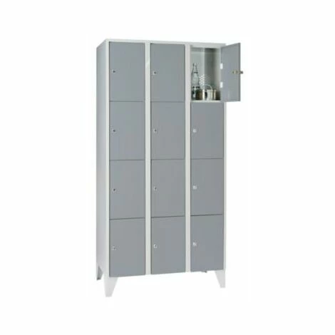 Abteilbreite: 300 mm, Anzahl Fächer: 12, Anzahl Schlüssel: 24, Breite: 900 mm, Fachbodenhöhe: 410 mm, Fachbreite: 300 mm, Höhe: 1850 mm, Staffelpreisvorteil ab: 1 Stück, Tastaturplatte: 0, Tiefe: 500 mm, Innenausstattung: Fächer ohne Unterteilung, Korpusfarbe: lichtgrau, Material: Stahlblech geschweisst, Türart: Vollwand-Türen, Verschlussart: Doppelbartschloss mit 2 Schlüsseln