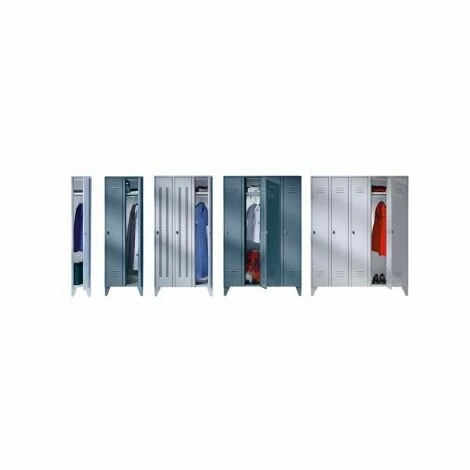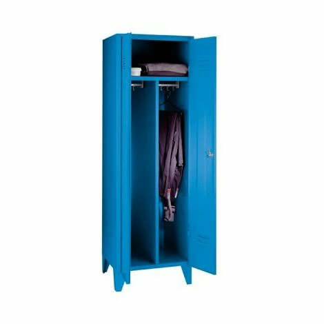 Abteilbreite: 600 mm, Anzahl Abteile: 1, Breite: 600 mm, Fußhöhe: 150 mm, Höhe: 1850 mm, Staffelpreisvorteil ab: 1 Stück, Tastaturplatte: 0, Tiefe: 500 mm, Anlieferung: montiert, Ausführung Spindgestell: mit 4 Stollenfüßen, Innenausstattung: 1 Hutboden, 1 Kleiderstange, 6 Schiebehaken, feste Mitteltrennwand, Korpusfarbe: Lichtblau Ral 5012, Material: Stahlblech, Oberfläche: beschichtet, Preiseinheit: Stück, Türart: Vollwand-Türen, Türfarbe: lichtblau RAL 5012, Verschlussart: Doppelbartschloss mit 2 Schlüsseln