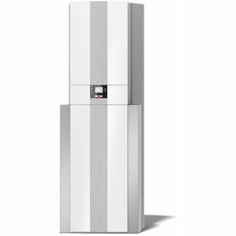 - Wasserseitiger Anschluss 3 x D 28 mm Glattrohr für Vorlauf-Heizkreis/Vorlauf Warmwasserbereitung/Rücklauf Heizung/Warmwasserbereitung